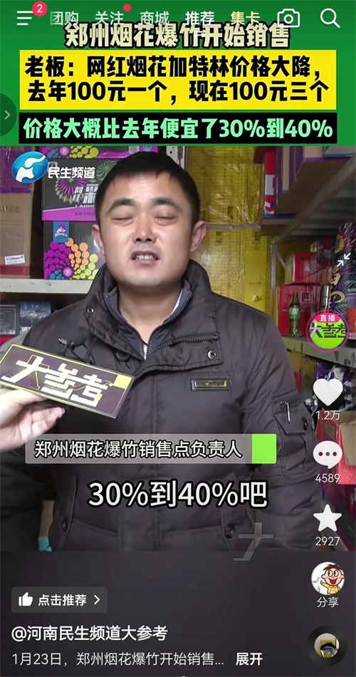 到底是什么原因让今年的烟花爆竹价格大降价?其他地区的烟花爆竹价格有降价吗?降价幅度大不大?