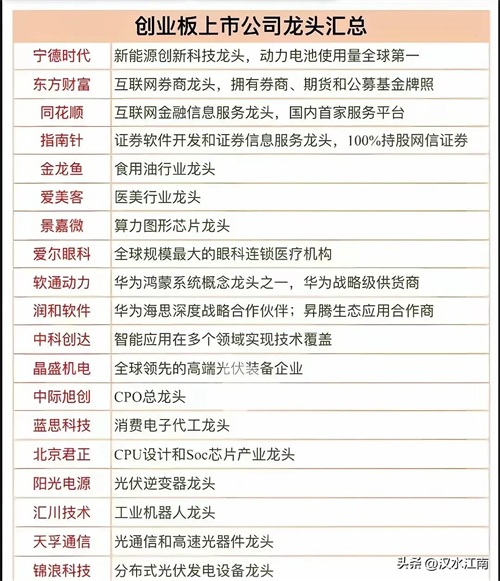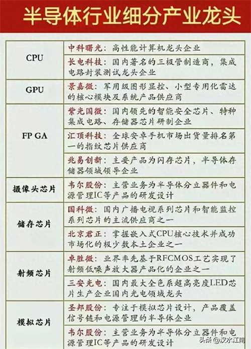 半导体细分龙头股+创业板上市公司龙头汇总+华为代理概念股