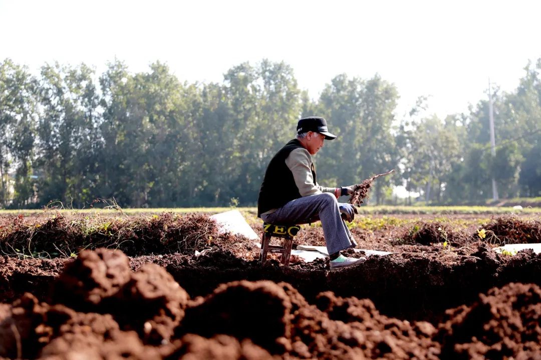 霜降时节,铁棍山药进入收获旺季,温县种植户利用晴好天气采挖山药。