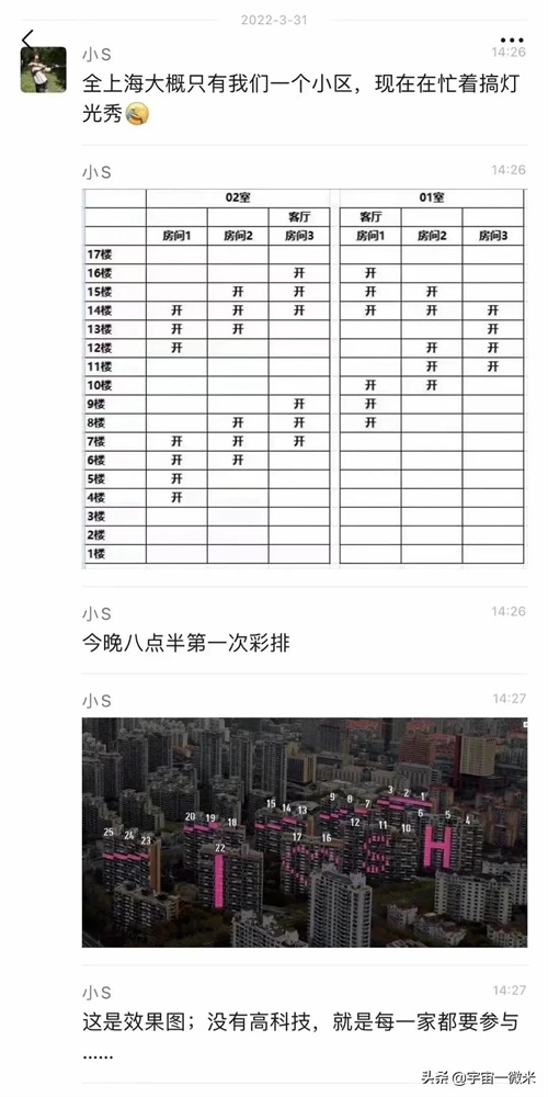 甚至居民楼的居民配合控灯,打出“I ❤️ SH”,让大家破防。