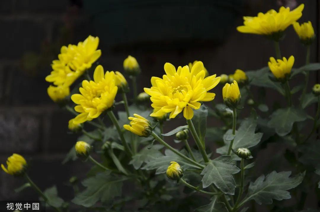黄花带露,细雨生寒,残枝枯树,红叶满阶。