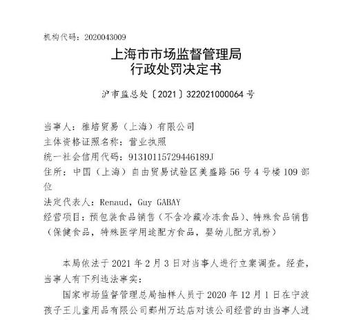 天眼查APP显示,5月6日,上海市市场监管局对雅培贸易(上海)有限公司作出行政处罚,处罚事由为“生产经营被包装材料、容器、运输工具等污染的食品、食品添加剂”,对其没收物品,没收违法所得343.740729万元,罚款909.314058万元。