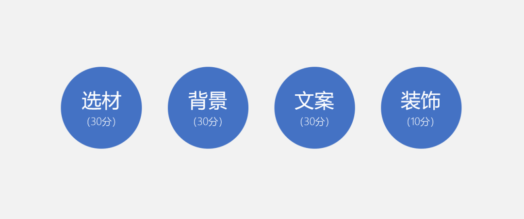 选材,背景,文案排版在PPT中非常重要,各占30分,点缀和装饰占10分。