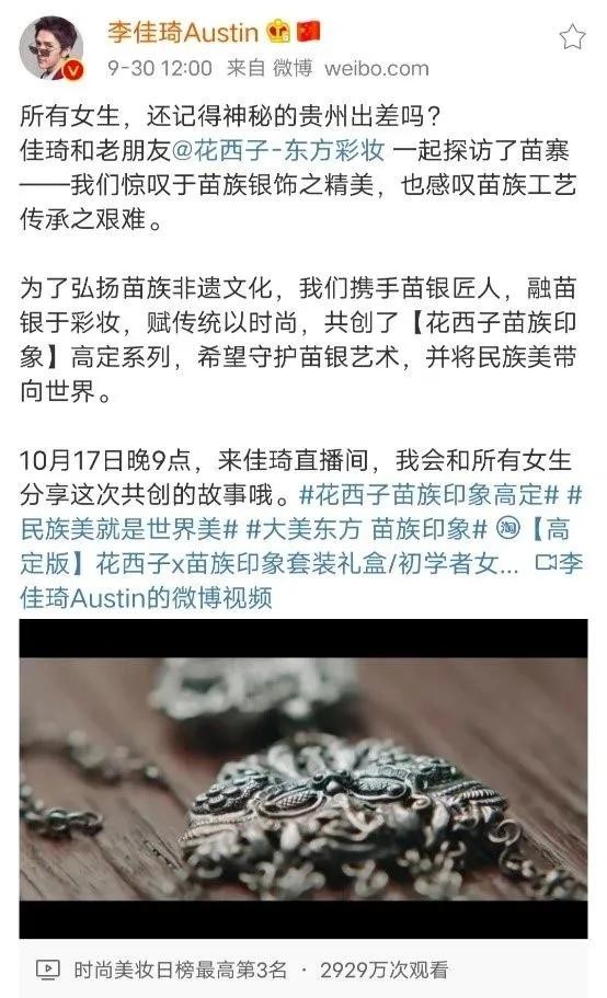 从花西子和李佳琦的合作的几种形式来看,花西子对自身品牌差异性的打造并不特定存在于其中的哪几种,它借助李佳琦这个流量巨大的IP,时刻准备着为输出自己的品牌文化和内容蓄力。