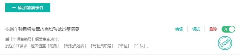 设置了一个“前端事件”,当填写好检查的车辆自编号后,自动调取API接口的数据,返回线路、驾驶员姓名、职号、单位和车队的信息,极大地方便了稽查人员。
