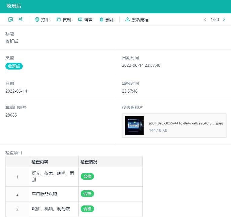 驾驶员的车辆例保工作,是要在每天出车前,对车辆的主要部件状态做一个检查,如果有不合格的,就不允许驾驶该辆车,需要换车运营。同样在每次收班后,对车辆再做一次体检。相关的例保检查结果,由驾驶员记录在纸质台账上并签字确认。纸质台账的弊端很多:实时性不强,信息传递不方便,历史数据查找不方便,填写内容受到限制,以及填报过程无迹可寻、长期填写需要大量纸张成本等等弊端。