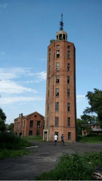 香坊木材厂老水塔建于1953年,塔高34米,为六棱形建筑,又称“望火楼”,兼具水塔和瞭望功能,为当年苏联专家设计。