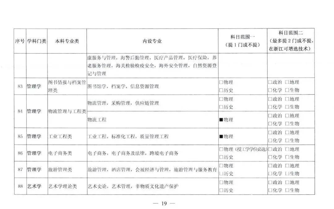 说明:因篇幅有限,以下分类中,如果“通用版指引”对整个本科专业类内各个专业的选科要求是一致的,则只列出该本科专业类,不具体到专业;如果不一致,则在该本科专业类后括号备注符合分类要求的专业。