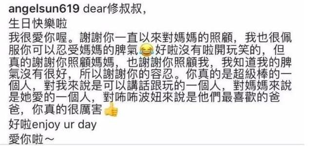 梧桐妹也十分喜欢这个“休叔叔”,每年修杰楷过生日,梧桐妹都会准时送上祝福。