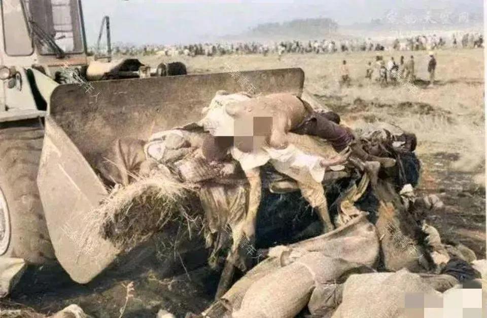 从照片上可以看到,这些尸体堆积如山,惨不忍睹。每具尸体的背后,都是一个家庭的破灭,以及幸存者的切肤之痛……