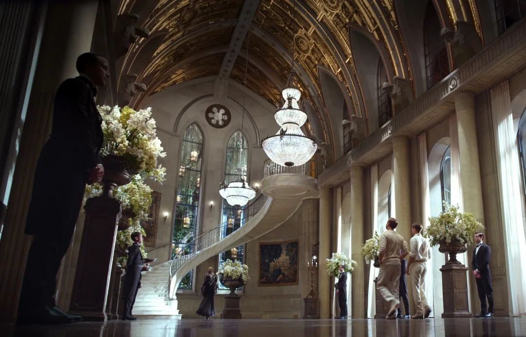 其实在这部电影里,从海报到场景设计都运用了大量Art Deco元素。影片中的城堡,鲜花、流苏、亮片、烛台等元素,都为高贵奢华添上更为浓墨重彩的一笔,将“纸醉金迷”演绎到极致。