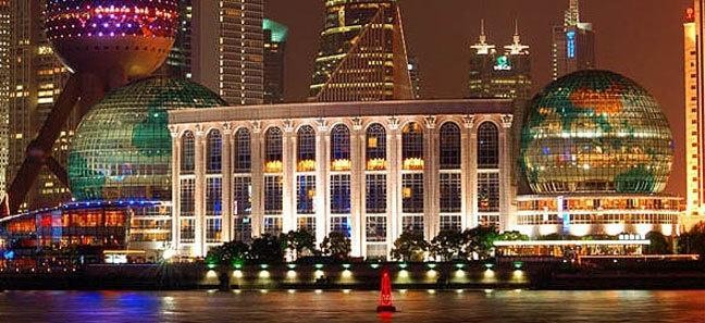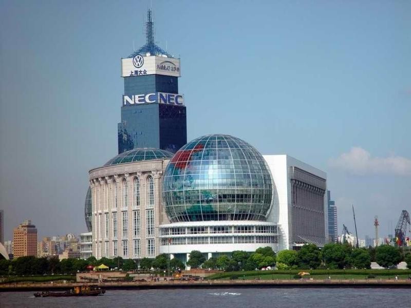 上海国际会议中心坐落在浦东陆家嘴东方明珠广播电视塔旁,于1999年8月建成。从外滩隔江相望国际会议中心,只见乳白色的外墙轻轻地托起两只巨大的球体。大球直径50米,高51米;小球直径也是50米,但高只有38米,一大一小,相映成趣。球体上的透明玻璃拼装出世界地图图形,意寓“上海走向世界”。上海国际会议中心的外墙总面积达25860平方米,采用了微晶银幕墙、花岗石幕墙、金属铝板幕墙、破璃幕墙等外墙材料,显得凝重高雅。外墙上安装的25只、每只约8吨重的石柱帽更突出建筑物的雄伟壮观。上海国际会议中心上海国际会议中心坐落在浦东陆家嘴东方明珠广播电视塔旁。