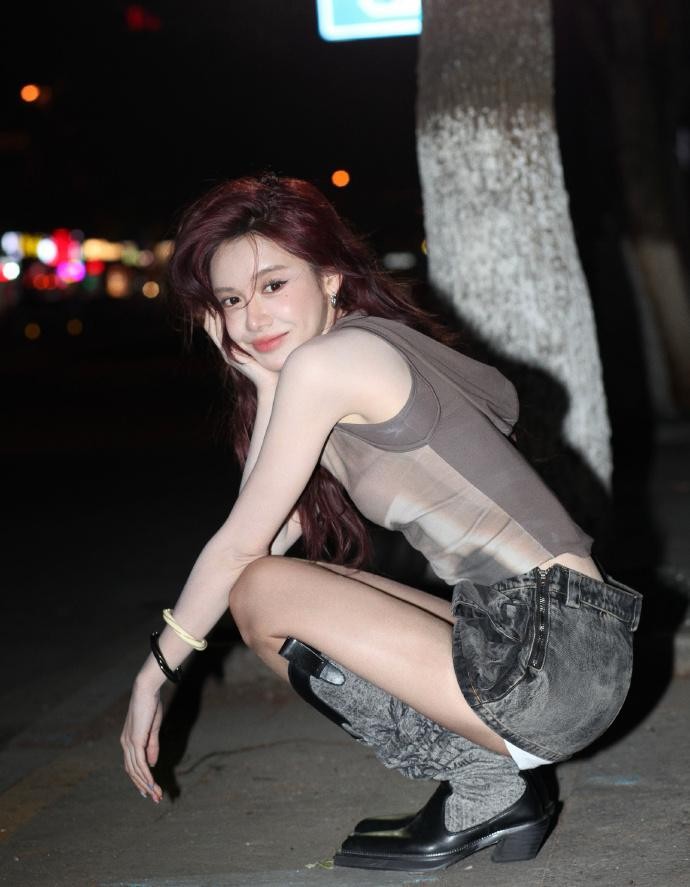 腾讯体育美女主持人美娜丝袜造型穿搭
