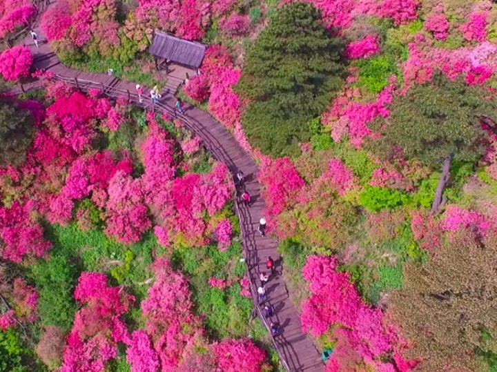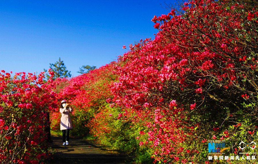 位于大别山区的湖北麻城百万亩野生杜鹃开放,欣赏花海,体验大别山美景。