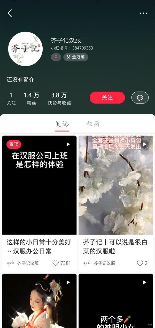 小红书,一个聚集着诸多年轻人的地方,是女孩们心中的“种草”圣地,虽然小红书的商家不及抖音快手等平台,但其浏览量和粉丝量也不容小觑,因此也有不少汉服商家入驻,淘宝是相比较于去年,这一年来,入驻小红书的汉服商家有大幅度的增加,不少商家在此宣传自家汉服,上传相关图片,来吸引更多同袍。因此我们依据各商家粉丝量,列出了小红书汉服商家粉丝前十五强。