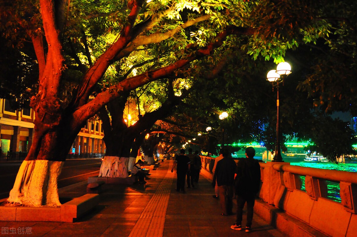 二沙岛处于珠江江心,岛上有各种造型别致典雅的艺术场馆,夜幕降临时,在岛上浪漫漫步。