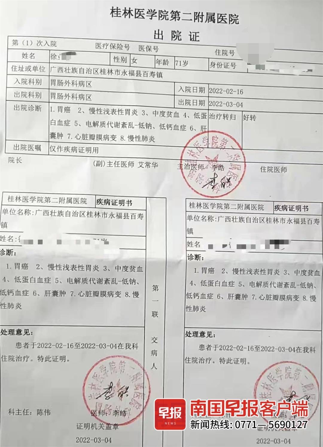 记者了解到,开始服用随便果时,罗女士的婆婆就出现了腹泻的情况,王女士却让她继续服用。在服用了四五天后,罗女士的婆婆出现便血、呕吐,呕吐物中还带有血迹。意识到情况不对劲,王女士才将罗女士的婆婆送往桂林医学院第二附属医院抢救。此次送医,罗女士的婆婆被确诊为胃癌和慢性浅表性胃炎。