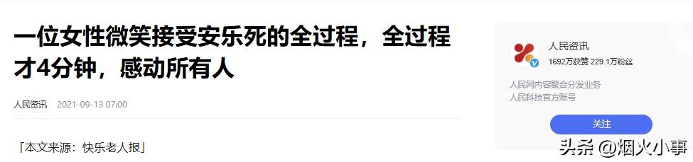 2、一位女性微笑接受安乐死的全过程,全过程才4分钟,感动所有人 人民资讯 2021年9月13日发布