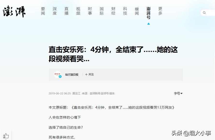 1、直击安乐死:4分钟,全结束了……她的这段视频看哭... 澎湃新闻 2019年6月22日发布