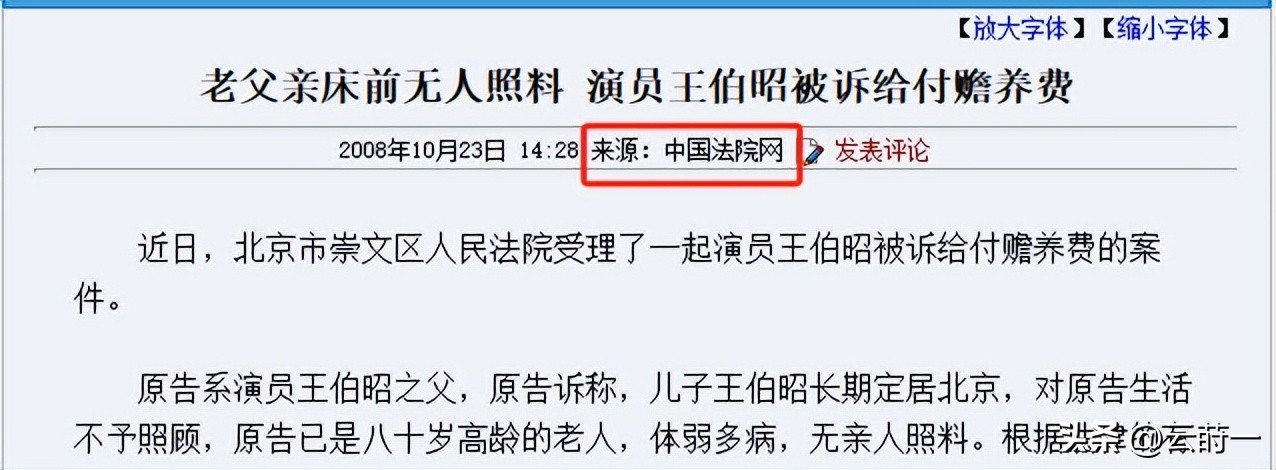 作为“不行使赡养义务”而被告上法庭的明星,王伯昭在大家心中的形象再次多了一些污点。