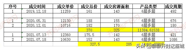 6层多层产品成交均价:11401.06元/㎡。