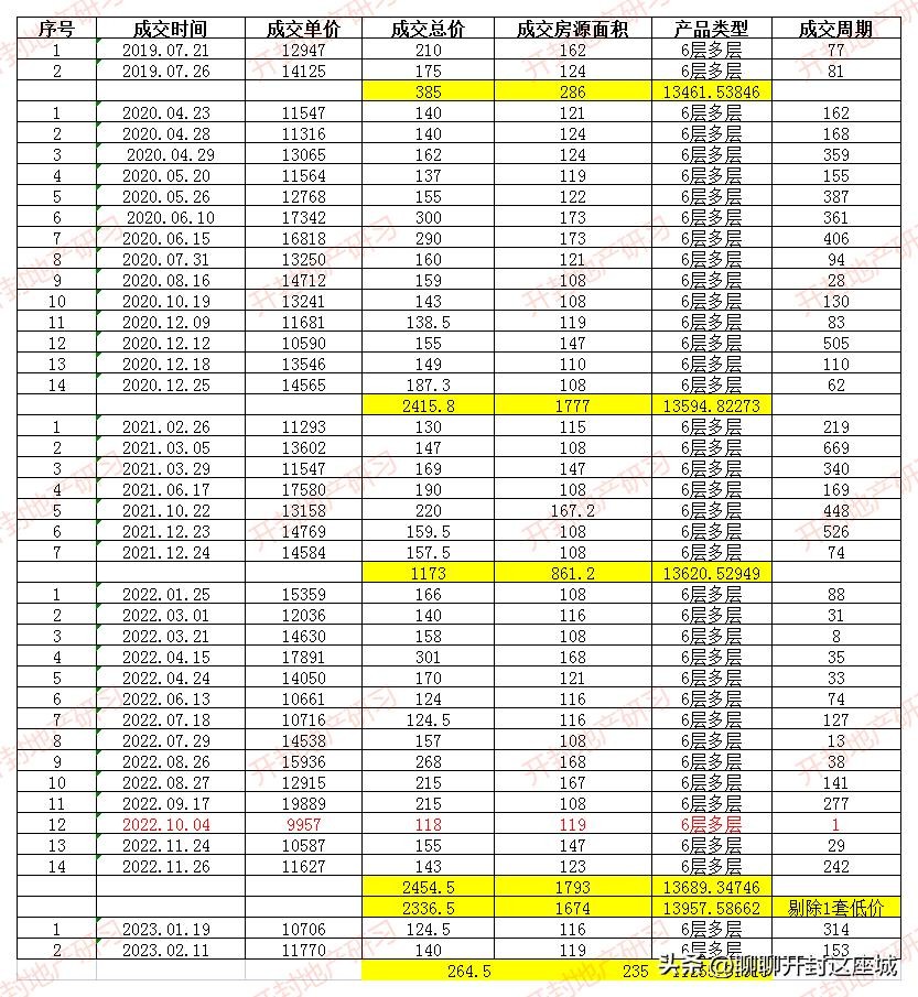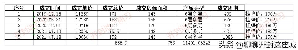 附:郑开橄榄城二手房成交数据表(359套)