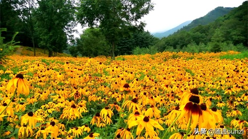 500亩黑心金光菊花海,最佳观赏时间:7月。