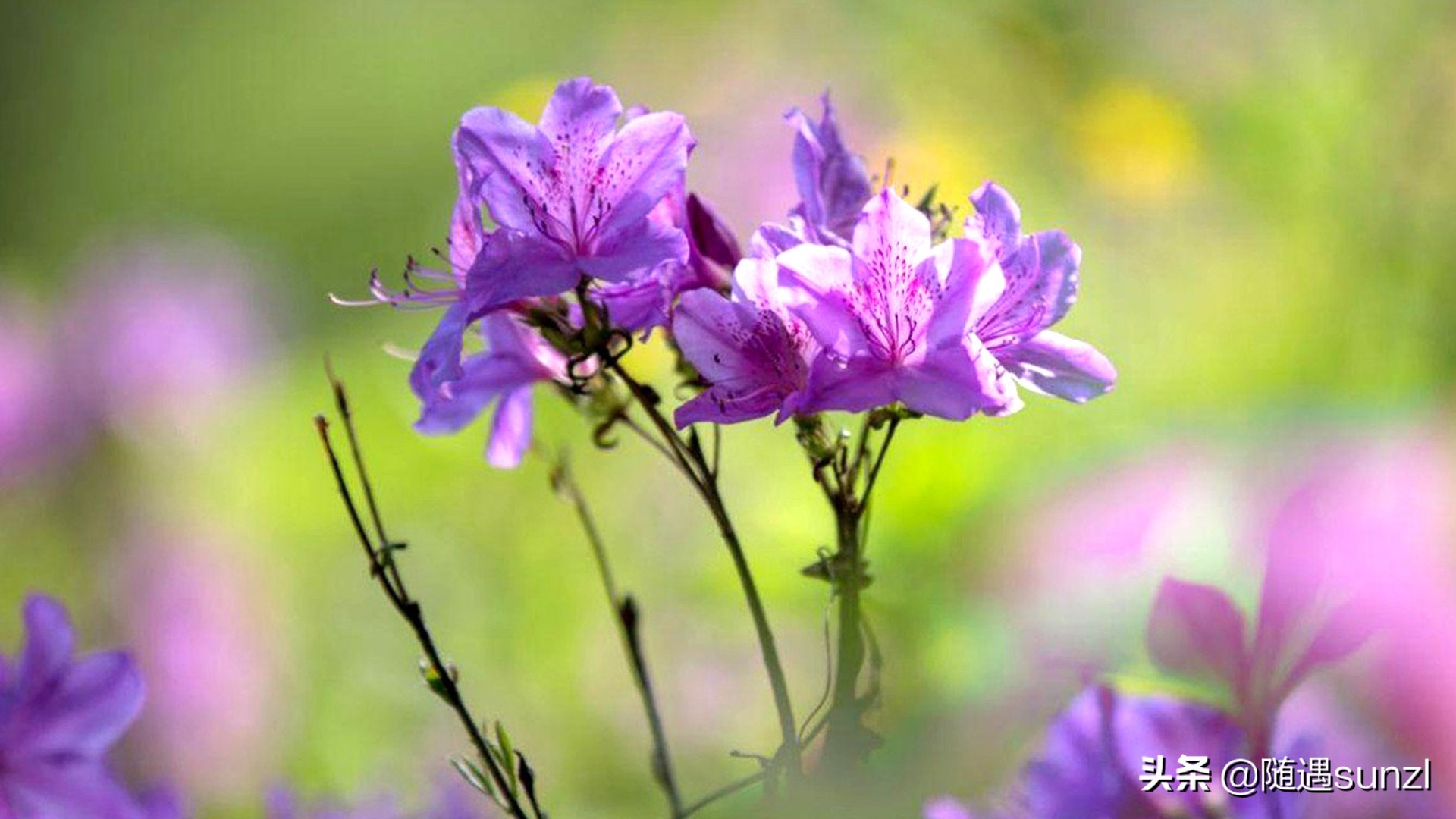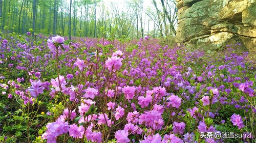 野生杜鹃花,又名映山红。中国十大名花之一,主要分布于我国中南及西南地区,有“花中西施”美誉。在东北地区很少有大面积集中呈现的景观出现。