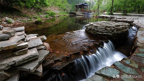 老边沟在夏雨里婉约,万象谷(游览区)林木葱茏、清流逶迤,演绎着朝晖夕阴,气象万千。