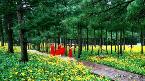 松海区域:高大的红松遮天蔽日,呵护着片片明艳的金光菊。走进这场松菊之恋的婚姻殿堂,能够得到属于自己的那份启迪。高大的就要遮风蔽霜,勇于担当;弱小的只需靡然顺风,负责温柔。这样的画面不仅美丽和谐,内容也是丰富多彩的。