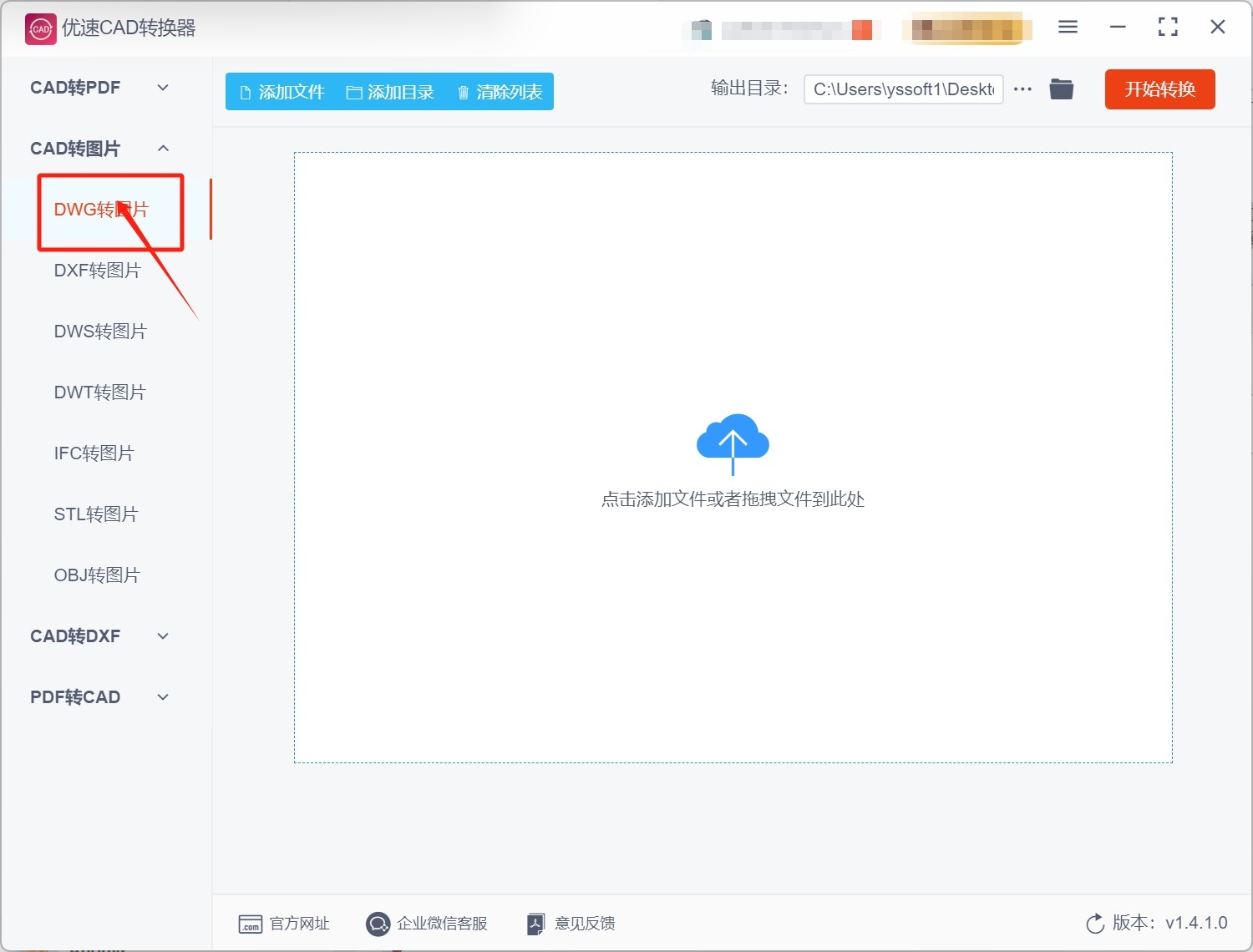步骤2:进入“CAD转换”模块后,在左侧功能列表中找到并点击“CAD转图片”选项。这将带你到一个专门用于处理CAD文件转换的页面。此时,你可以开始进行文件导入。