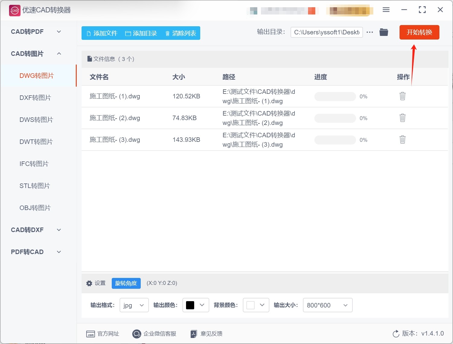 步骤5:所有设置完成后,点击页面下方的“开始转换”按钮。在线工具会自动开始转换过程。此时,你只需耐心等待工具将CAD文件转换为图片。