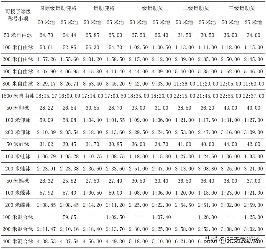 从2025年开始,将执行新的《运动员技术等级标准》。(具体标准可看修订后游泳运动员技术等级标准发布,2025年1月1日起执行)