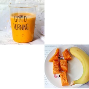 4⃣南瓜香蕉果昔老南瓜不用去皮,洗净直接蒸熟,和香蕉一起打成果子,超级香甜,比韩式南瓜粥好喝太多了。