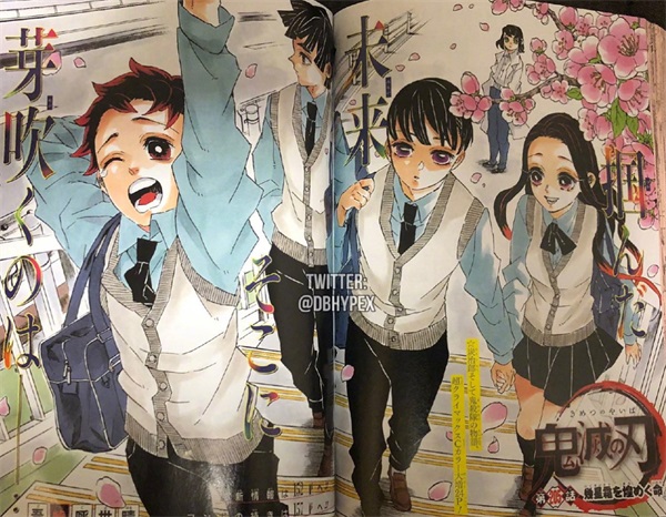 剩下比较有趣的信息就是伊之助的转世以及杏寿郎的转世桃寿郎成为了炭彦他们的同级生,看到杏寿郎之后原本已经柱们都转世成炭彦他们的同级生。