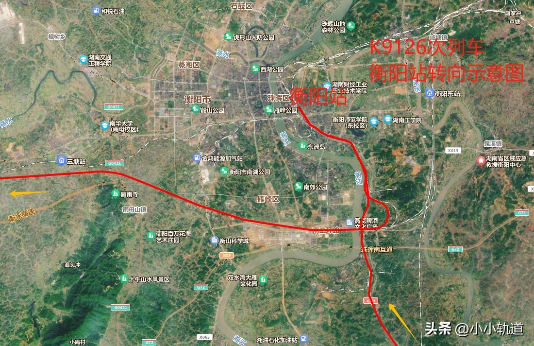 K9126次列车在衡阳站停靠46分钟,祁东站停靠12分钟。其中,列车在衡阳站进行转向。