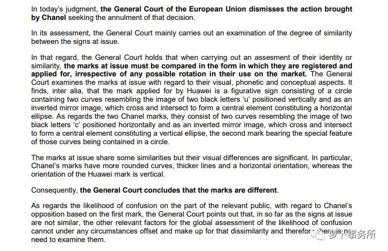 香奈儿诉华为商标与其相似,欧盟法院说“NO”
