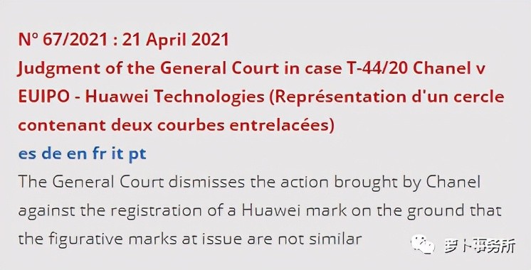 欧盟法院官网上最近披露了一则诉讼,牵扯到的是毫不相干的两个品牌:华为与香奈儿。