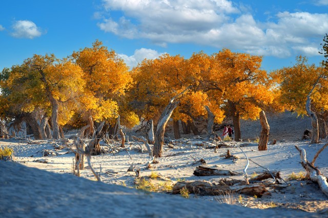 3. 胡杨林自然公园:位于沙雅县努尔巴克乡,距离县城约16公里。公园内拥有保存完好的原始胡杨林,树木形态各异,展现了胡杨“千年不死、千年不倒、千年不朽”的独特魅力。秋季时,金色的胡杨林与碧水交相辉映,景色壮观。