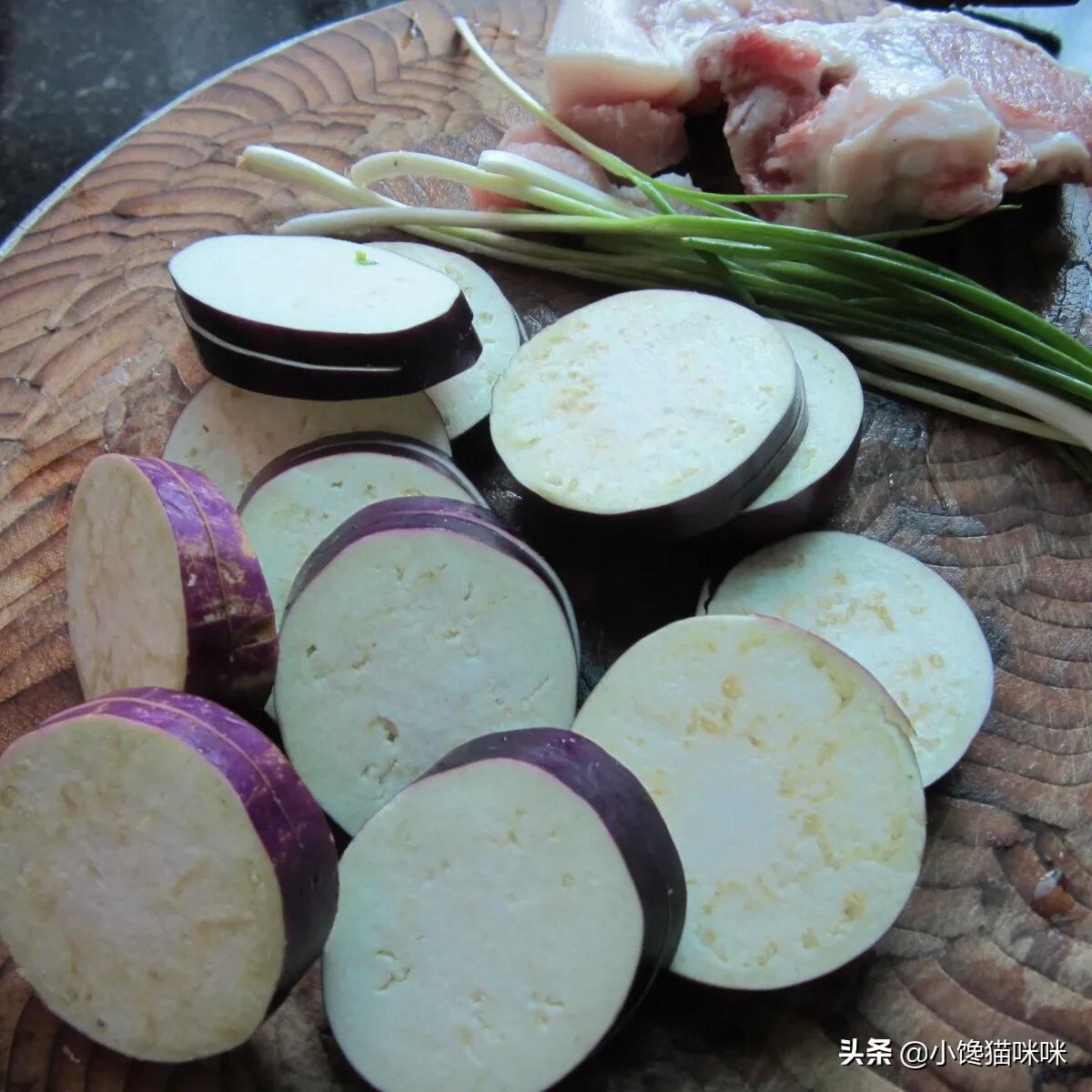 3.茄子洗净,切片,每两片之间留少许连着,不要切断。