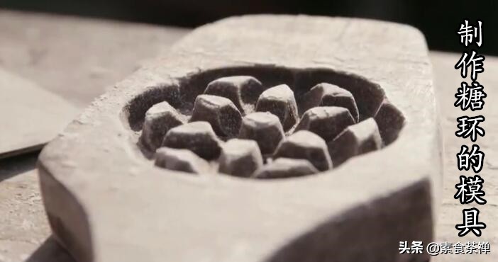 糖环的传统做法是将糯米团搓成长条,再围绕中间的一个小圆圈结成像花朵一样的形状,有环有眼,代表着繁衍。但是这样制作出来的糖环不仅工序复杂而且还耗时,因此,聪明的广东人就发明了制作糖环的模具,模具的诞生大大简化了糖环的制作流程,也让糖环得以流传。