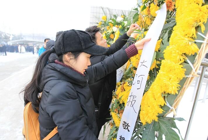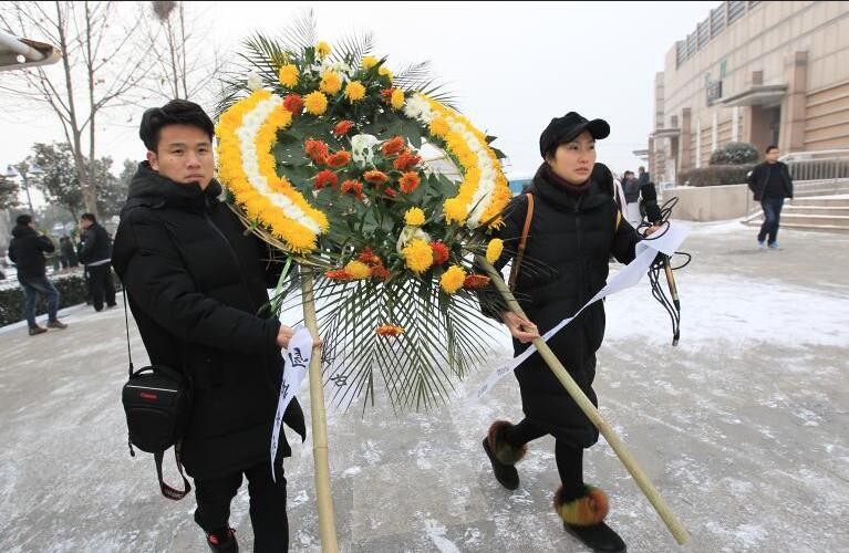杨海斌为爱妻准备了花圈,大河报也特地为莹莹献上了花圈。