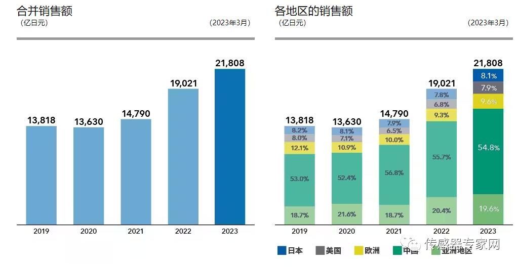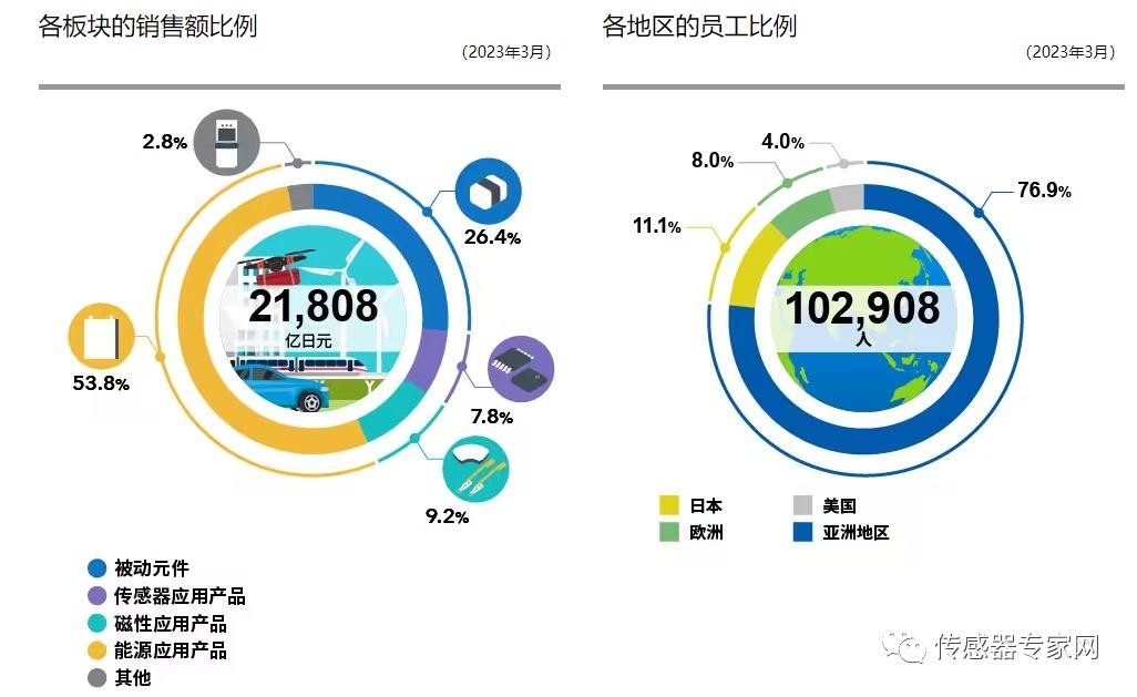 截止2023年3月,TDK在全球拥有超过10万名员工,年营业额21808亿日元(约1069亿人民币),TDK的传感器业务已经成为继能源应用后的又一支柱产业。