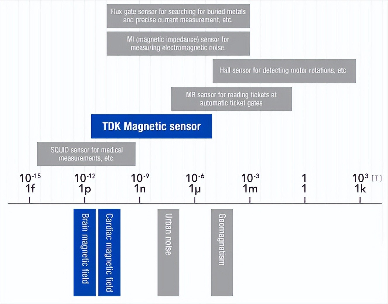 查看TDK的传感器,会经历一次奇特的人类宇宙观之旅。从航空到脑电波,是一个极度缩小的世界。霍尔传感器的测量范围在1000米的空间以内,而TDK的磁性传感器则致力于亚纳米和微米之间的范畴。从脑电波到街道噪音,都是TDK的兴趣所在。