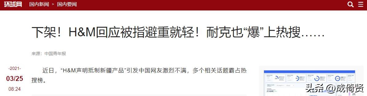 2.环球网:2021年3月25日,下架!H&M回应被指避重就轻!耐克也“爆”上热搜……