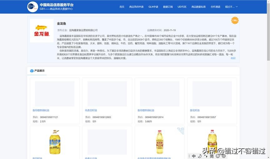 商品的一些基础信息里面包括商品名称、条码、品牌名称、条码状态、产品分类、上市日期、规格、净含量、产品尺寸及重量、产品描述信息(保质期、贮藏条件等)、生产商信息、产品图片展示、发布企业介绍等。同时也可以查企业信息,企业所拥有的品牌及企业产品目录,品牌简介同样也有信息。当然了,不是所有的商品都能够有以上列举的这些信息,有些商品信息还不够完善,大部分市场上常见的品牌商品的信息基本上都还是比较齐全的。