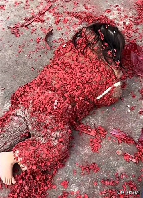 8.大年初一小孩看到满地的炮纸可开心了,于是就出现这一幕,她还说初一不能打小孩喔。
