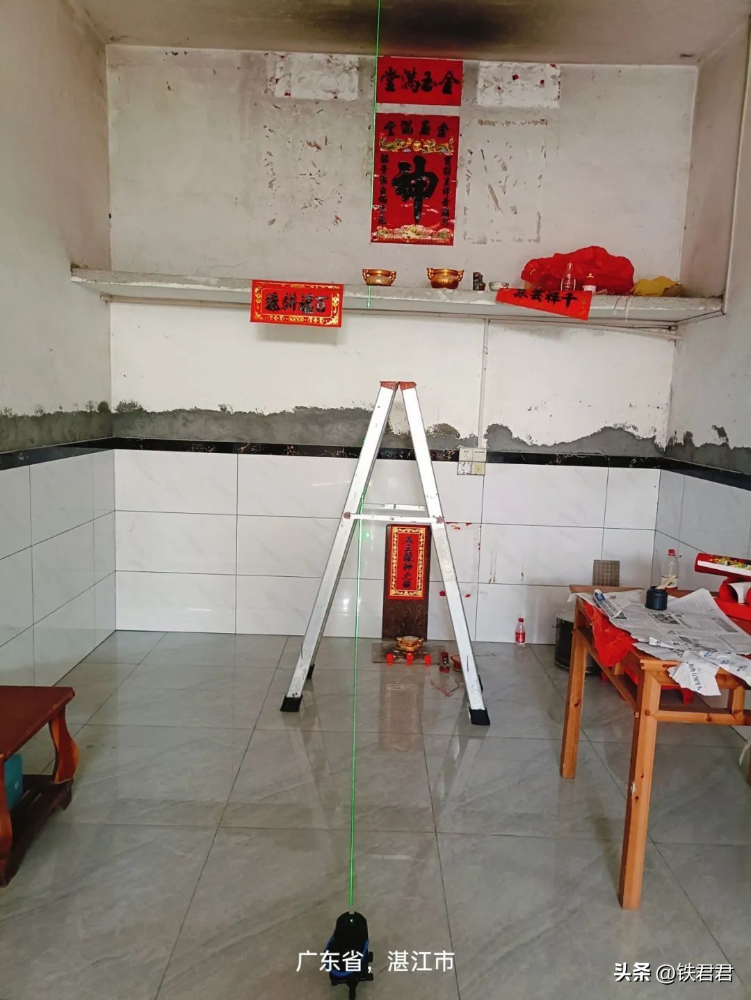 10.贴神位要专业,专业仪器都用上了。
