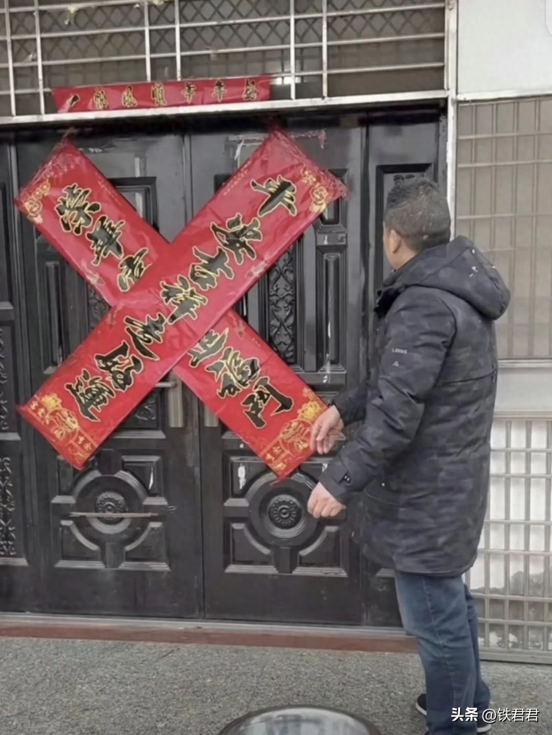 12.这大门口的对联金碧辉煌啊,一看就知道是卖对联的。