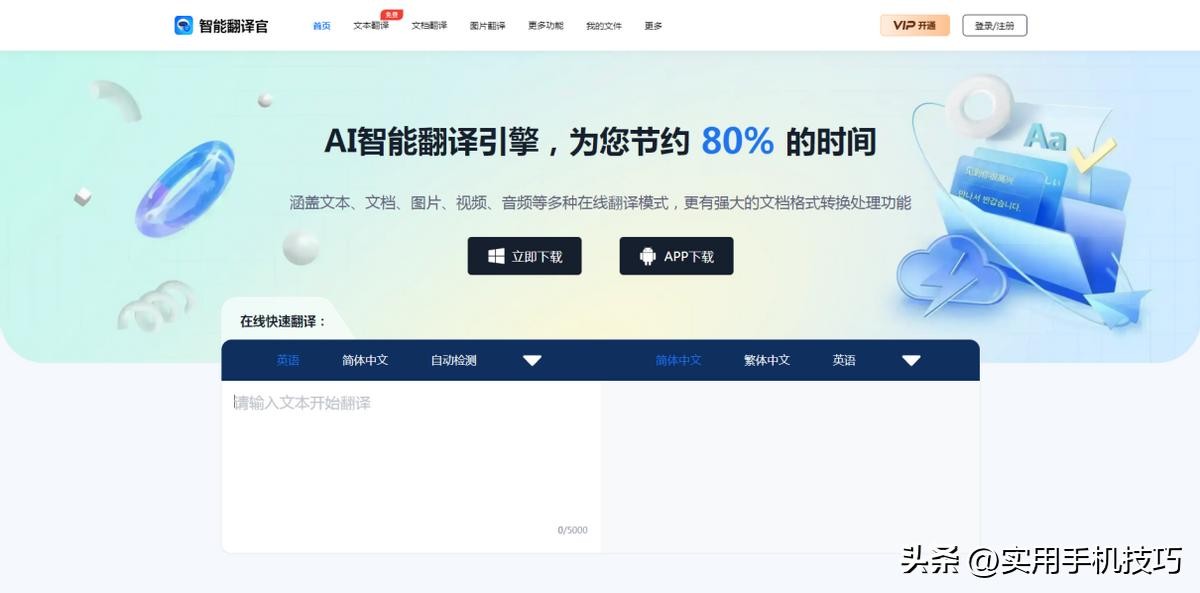 智能翻译官是一个具备多种语言翻译能力的翻译工具,涵盖文本、文档、图片、音频等多种在线翻译模式。